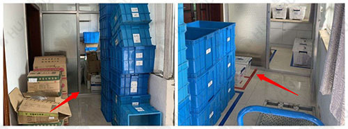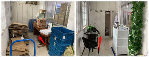 改善前 生活區(qū)對(duì)方大量的紙箱和發(fā)藥框,生活區(qū)與工作區(qū)域未合理分區(qū)