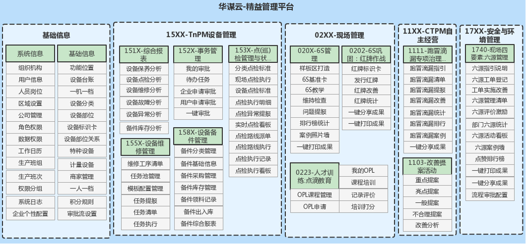 現(xiàn)場(chǎng)6S管理,全員持續(xù)改善,精益生產(chǎn),CTPM自主保全,TnPM設(shè)備管理,班組建設(shè),員工績(jī)效與技能提升,一站式采購(gòu)