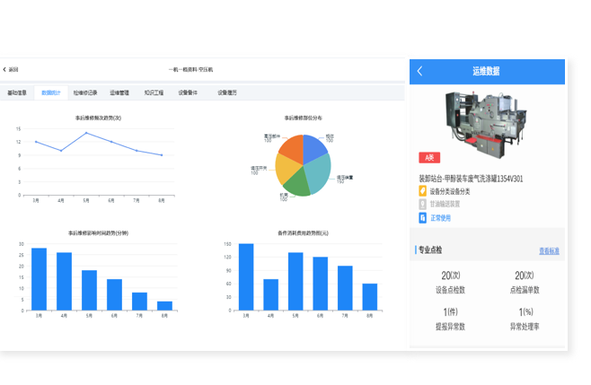 包含檢維修記錄、設(shè)備履歷、運(yùn)維數(shù)據(jù)、關(guān)鍵指標(biāo)、知識(shí)工程和關(guān)聯(lián)備件功能,數(shù)據(jù)更全面